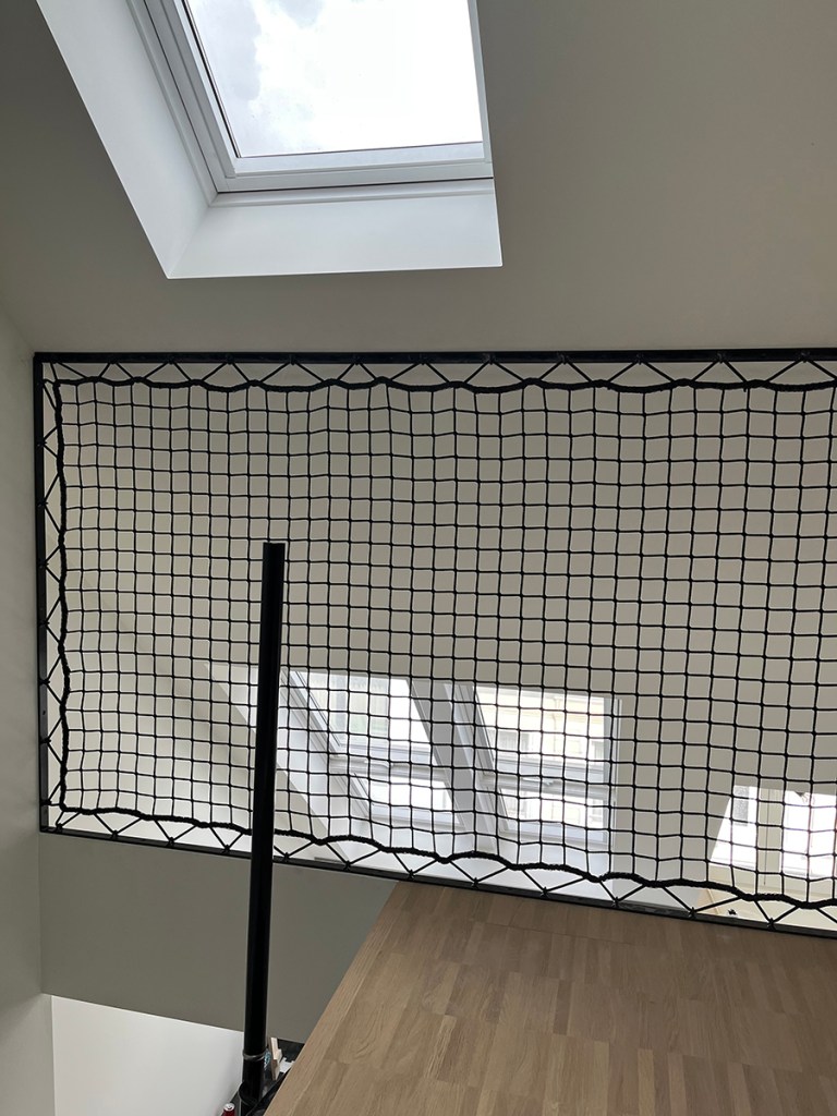 Omdat veiligheid een pré is hebben we op de kinderslaapkamers balustradenetten geplaatst. Dit geeft een leuke doorkijk en is uiteraard super safe