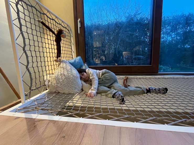 Voor de kinderen zijn er natuurlijk talloze mogelijkheden om naast het loungen ook het spelen te stimuleren. Denk alleen al aan de entree, waarbij er via een klimtunnel, klimwand of touwladder omhoog en naar beneden geklommen kan worden. Zelfs een roetsjbaan waar je vanaf het net naar de andere kant van de kamer kunt komen passeerde al eens de revue.