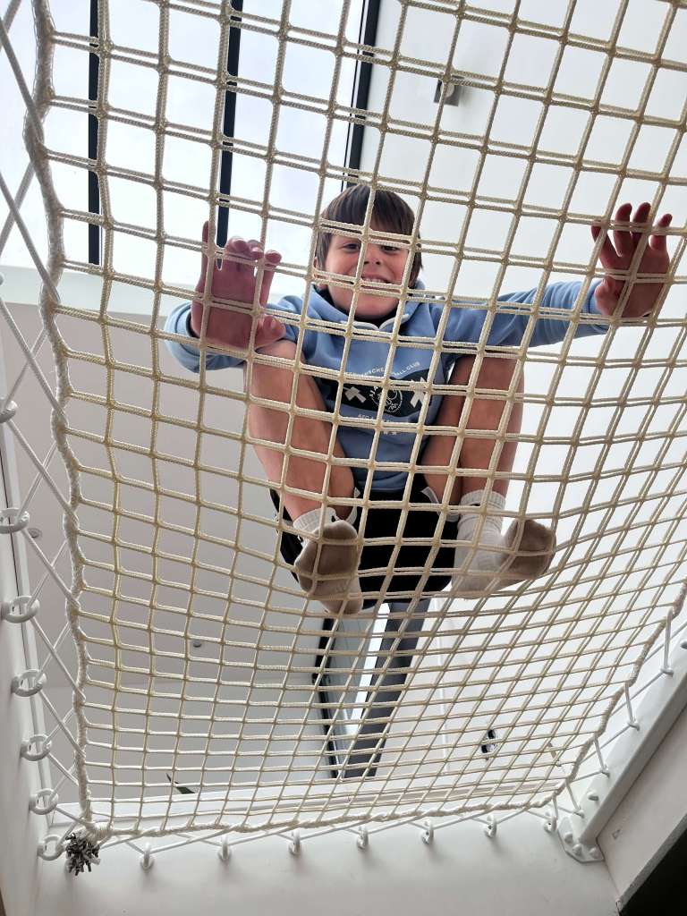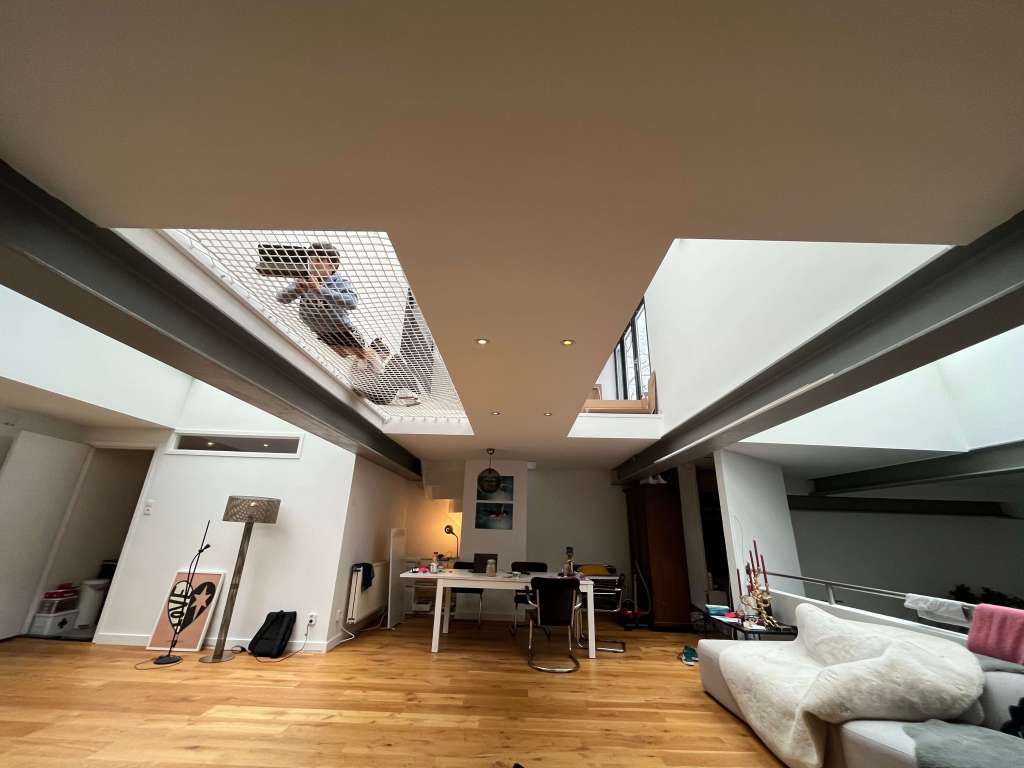 Een loftnet geeft deze ruimte een extra dimensie. Eerst was de bovenruimte nagenoeg niet te gebruiken maar door er een net in te spannen krijg je er een hele nieuwe verdieping bij.