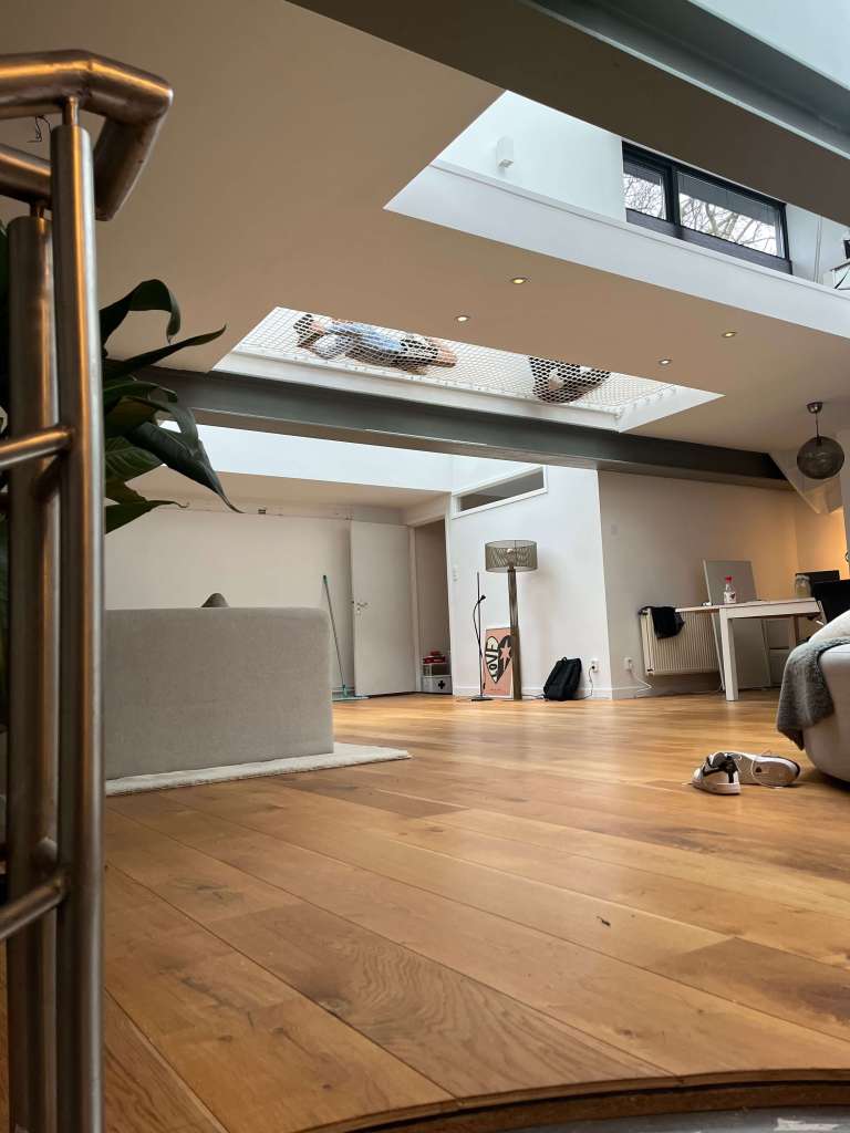 De ruimte eronder blijft ook fijn open doordat het loftnet veel licht doorlaat.