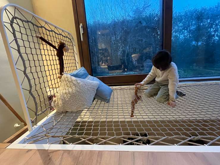 Eindelijk kan hij in zijn nieuwe kamer spelen, want nu het net erin zit is het helemaal veilig verklaard.
