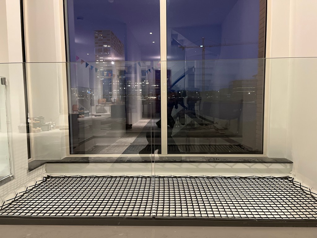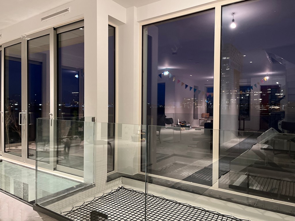 Een mooiere plek voor een lounge-net is er bijna niet. Hier achter de grote pui met uitzicht op het IJ is het natuurlijk ultiem genieten!