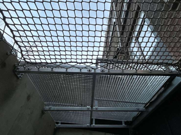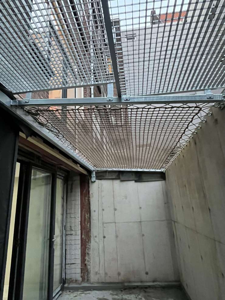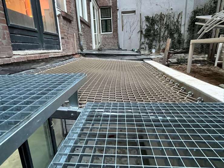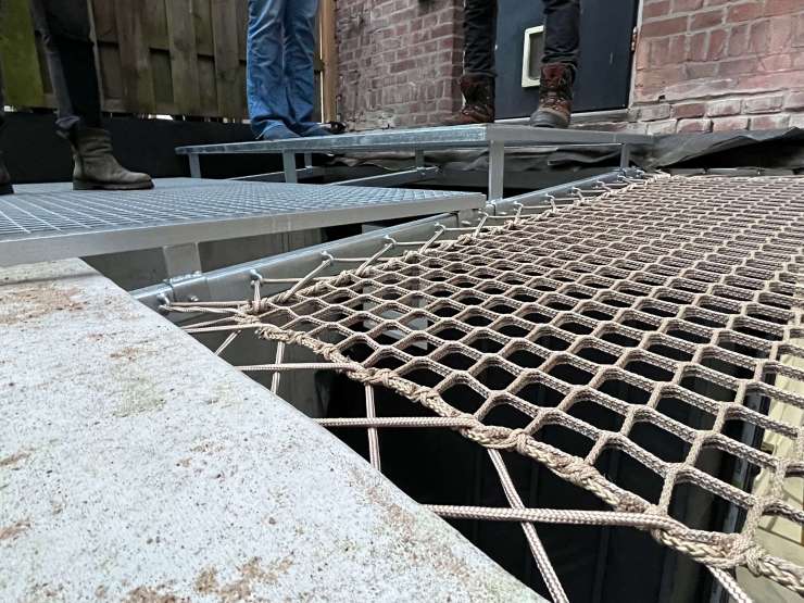 We maakten hiervoor een hele constructie van verzonken staal met looproosters en bevestigingen voor het net.