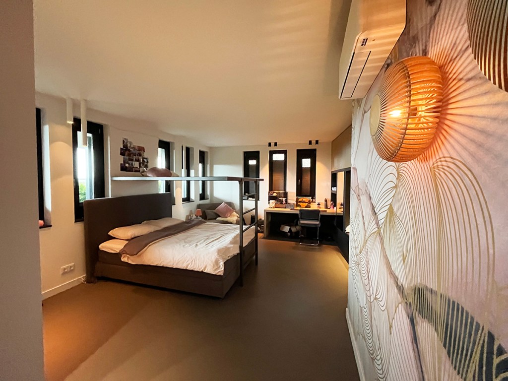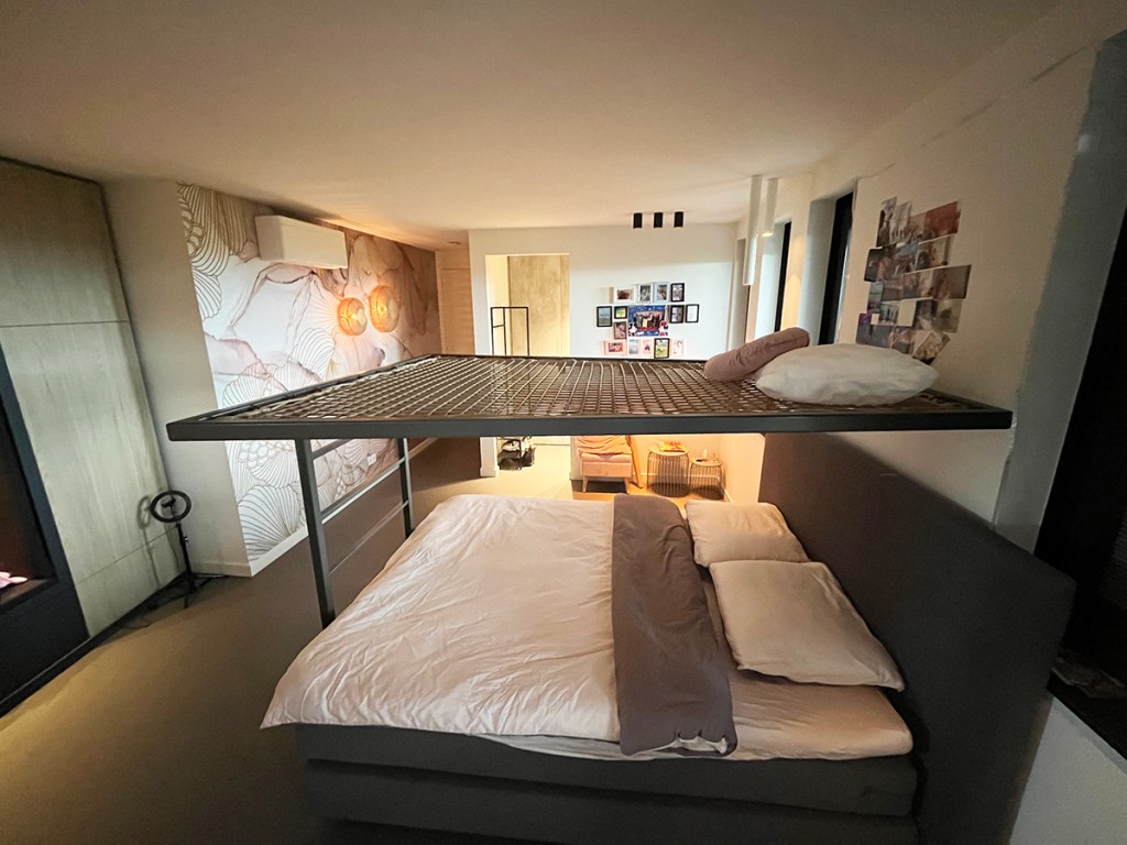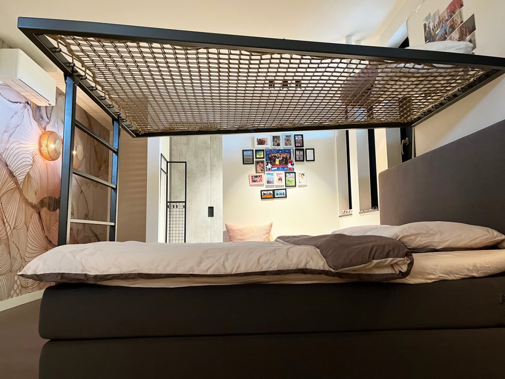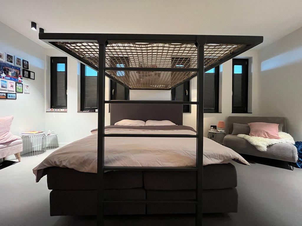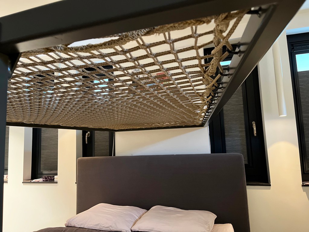 Een zwevende constructie maakt het hier mogelijk om niet alleen in het bed maar ook boven het bed te loungen!