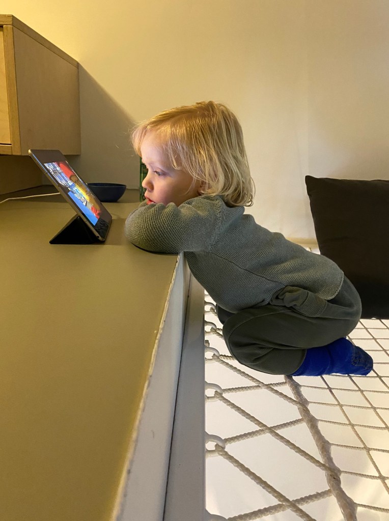 Dit loungenet is een mooie en veilige afscheiding tussen de twee ruimtes.