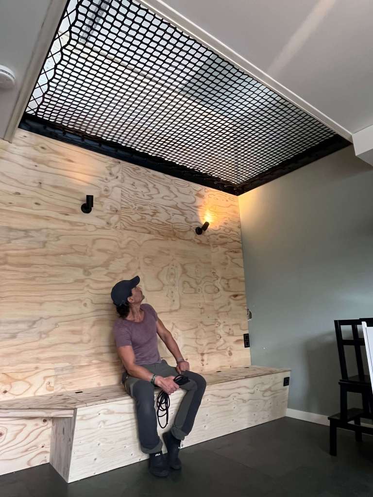 Ook bij een zwart net ziet het er nog open en licht uit van onderaf gezien.